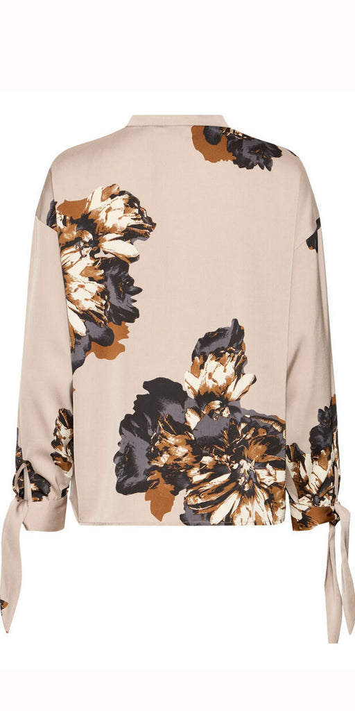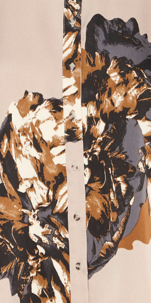 The b.young JANNIKE Shirt features a bold floral print in warm neutral tones. Designed with a relaxed fit, button front, and tie cuffs, it brings an effortless touch to everyday styling. Pair it with jeans or tailored trousers for a polished look. It even looks gorgeous styled open over a vest top.