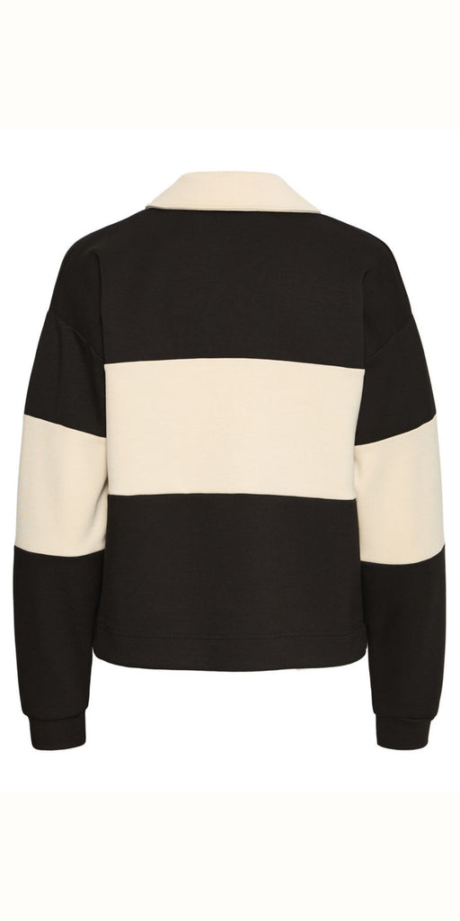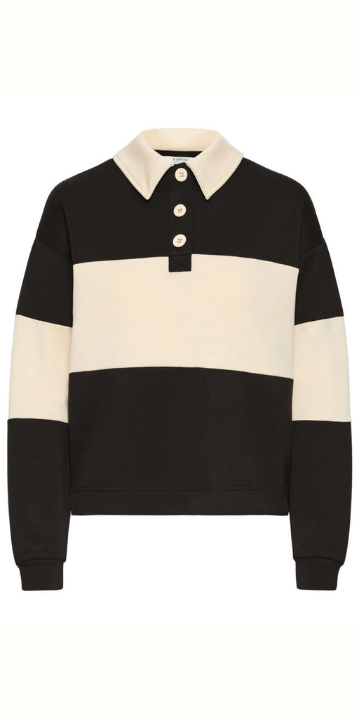 The b.young PUSTI Polo Pullover combines sporty comfort with a modern twist. Designed in bold colour blocks, it features a classic collar, button placket, and long sleeves in a soft, mid-weight fabric. Perfect for relaxed days or pairing with the matching PUSTI Pants for a coordinated look.