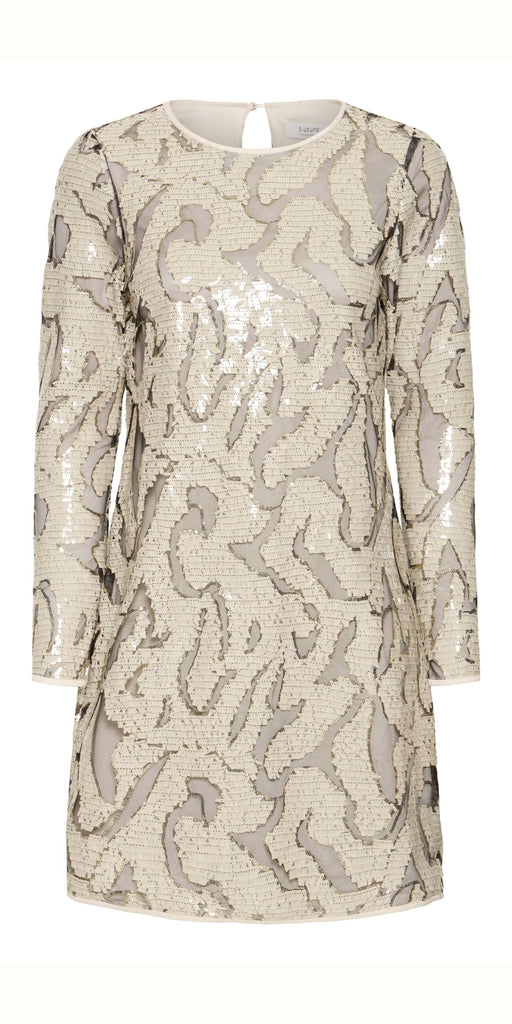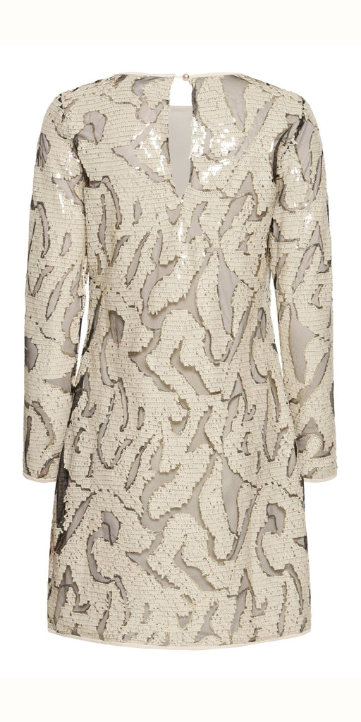 Make a statement in the luxurious B.Young RESE Dress. Designed with intricate sequin detailing on a soft mesh base, this long-sleeved mini dress shimmers beautifully with every movement. Fully lined for comfort, it’s perfect for special occasions and evening events.