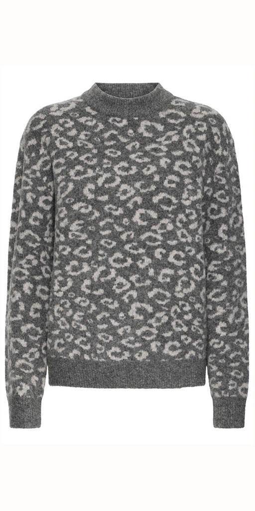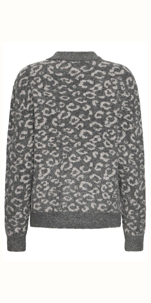 The PULZ Jeans ARTHA Jumper adds a cosy twist to everyday dressing. Featuring an all-over leopard print in soft grey tones, it’s designed with a soft knit texture, ribbed trims, and a relaxed fit for easy comfort. Ideal for layering through the cooler months.