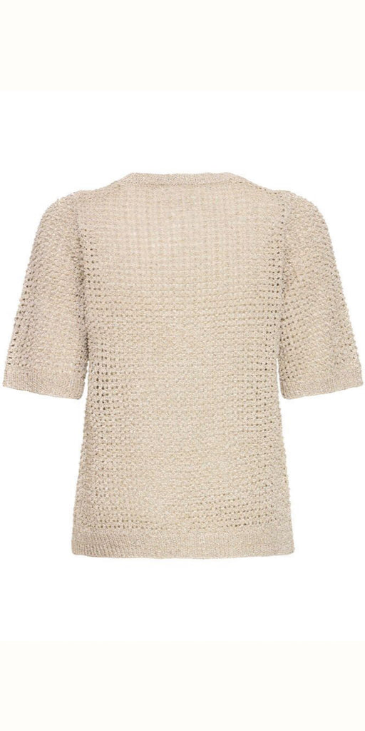 The luxurious PULZ VALERIE Pullover is crafted in a soft metallic knit that catches the light beautifully. Designed with short sleeves and a relaxed fit, it’s perfect for adding subtle sparkle to your everyday or evening looks.