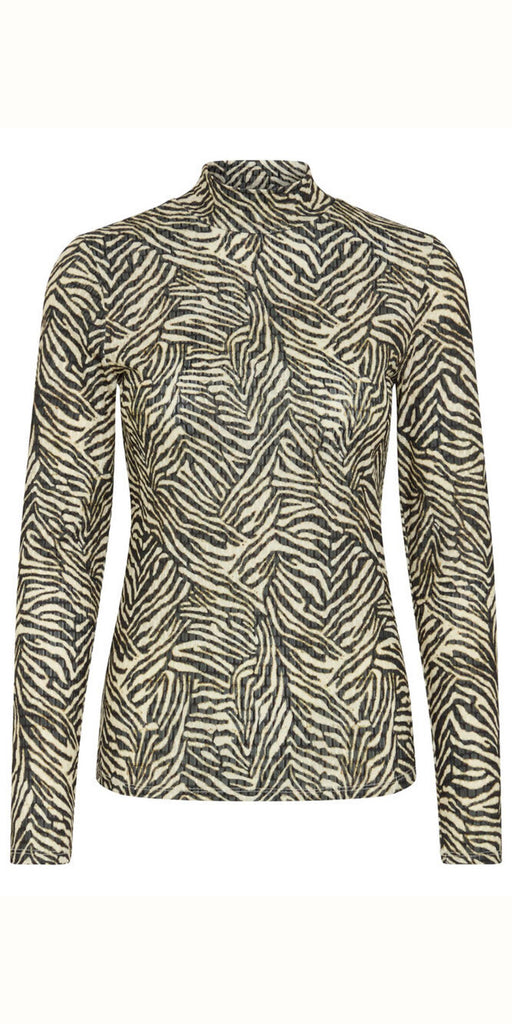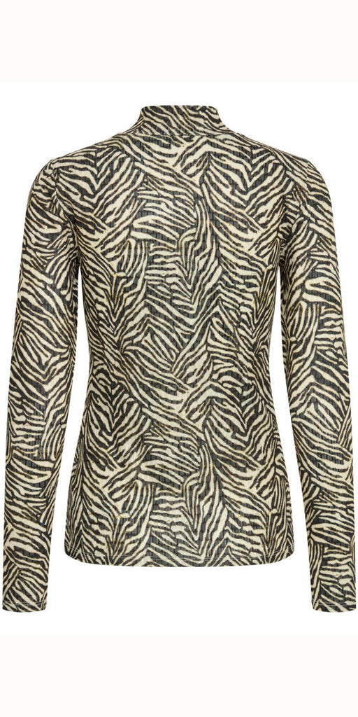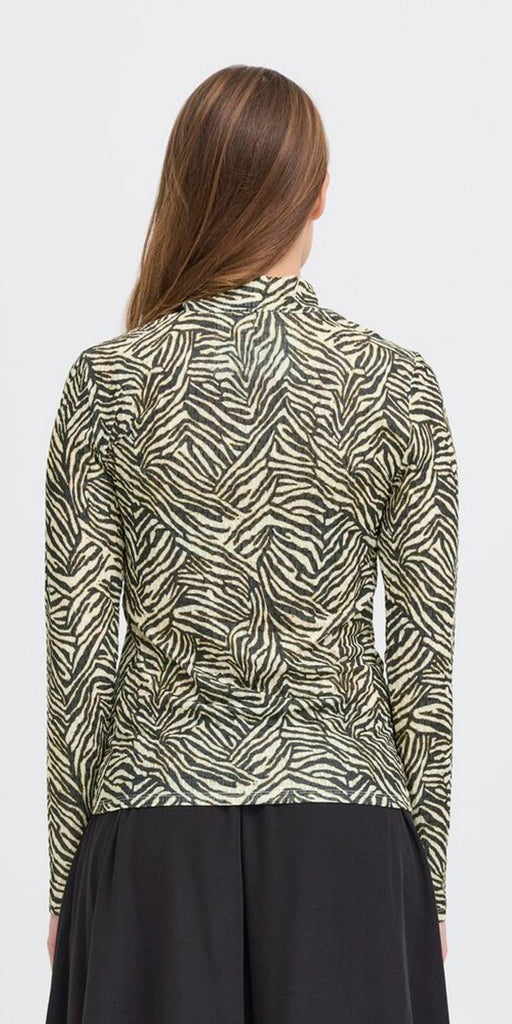 Stylish olive green tiger stripe layering top by ICHI. Super stylish and feels incredible. Slim fitting.