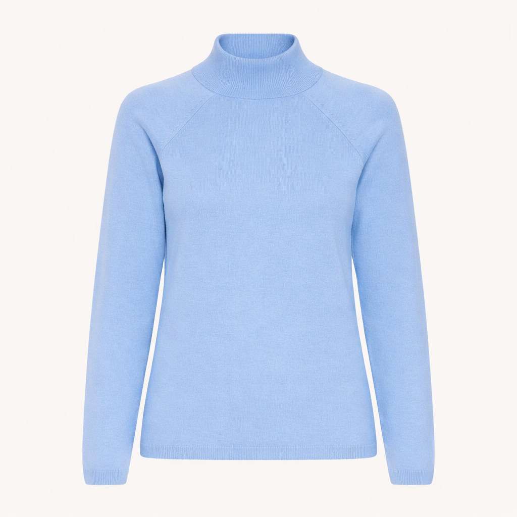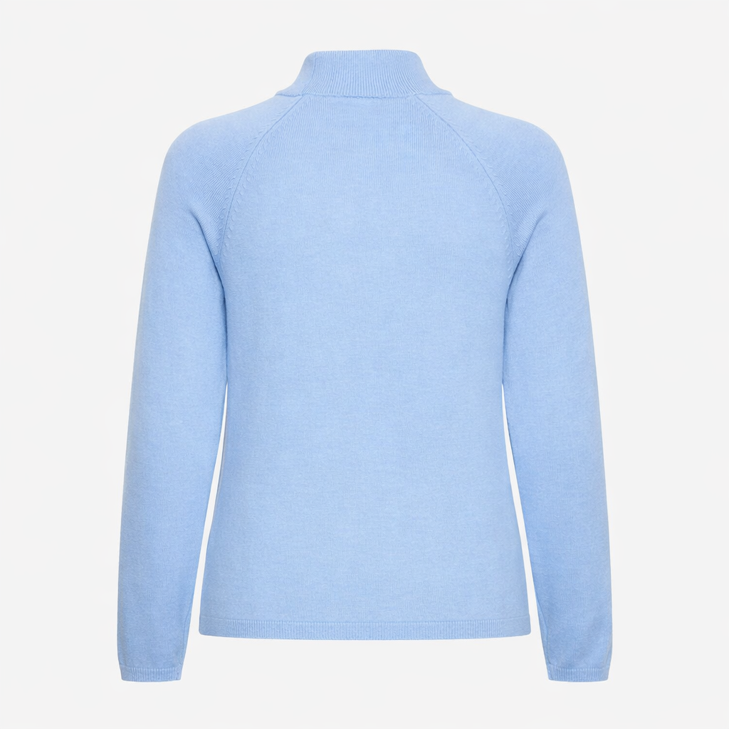 The SARA knit, by PULZ Jeans, is a sleek wardrobe essential, crafted in a beautifully soft fine knit with a subtle mock-neck silhouette. Its simple, feminine shape and light blue hue make it perfect for effortless layering — a timeless piece you’ll reach for season after season.
