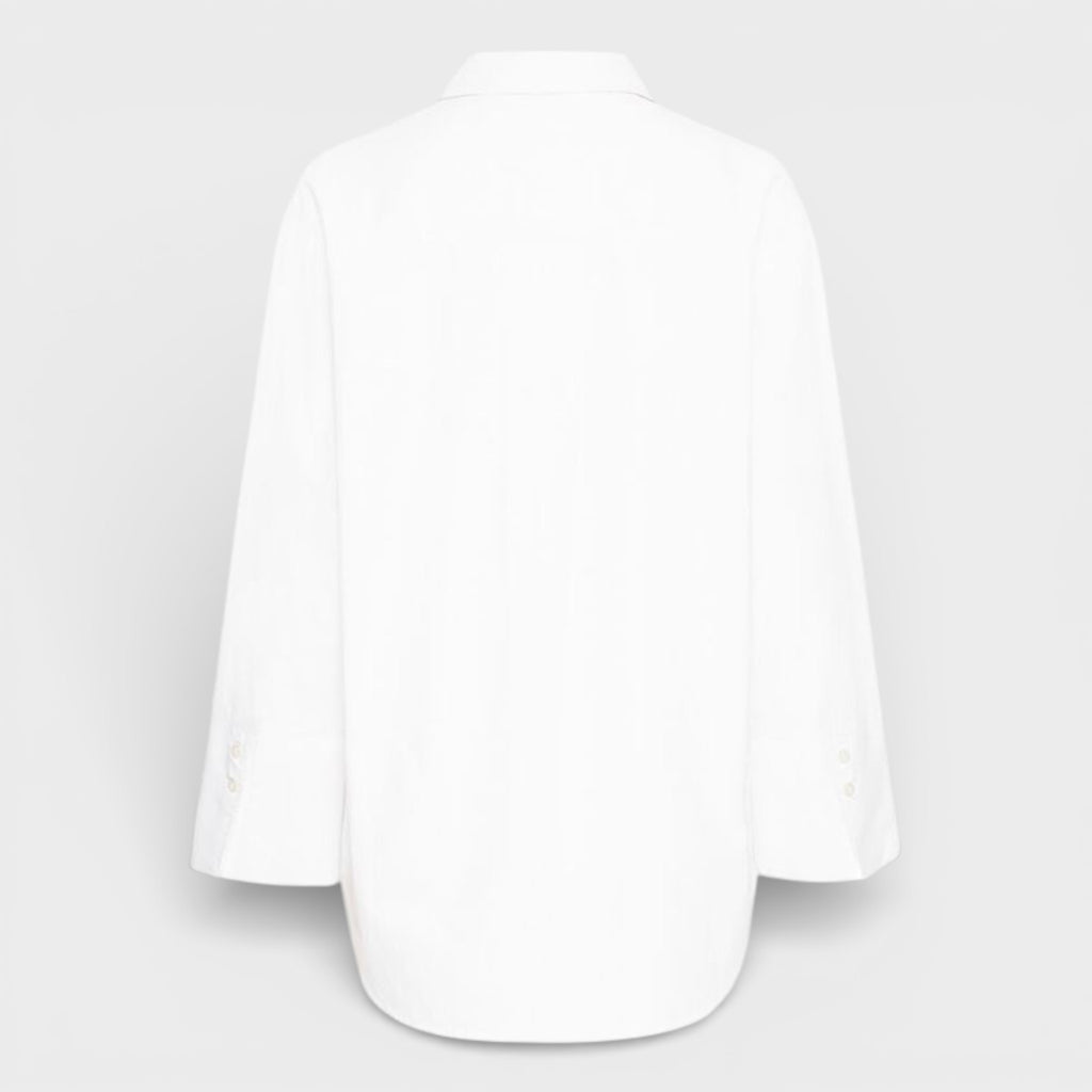 Timeless, classic crisp white longline shirt by b young. Perfect for layering under knits such as the OTIA or to be worn on its own.