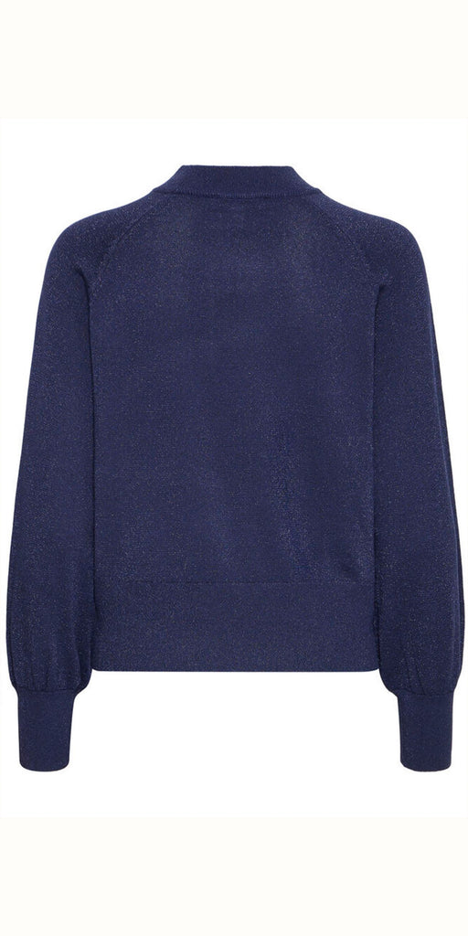 Deep evening blue, metallic knit by b young, perfect for the festive season and teams perfectly with our skirts, trousers and jeans.