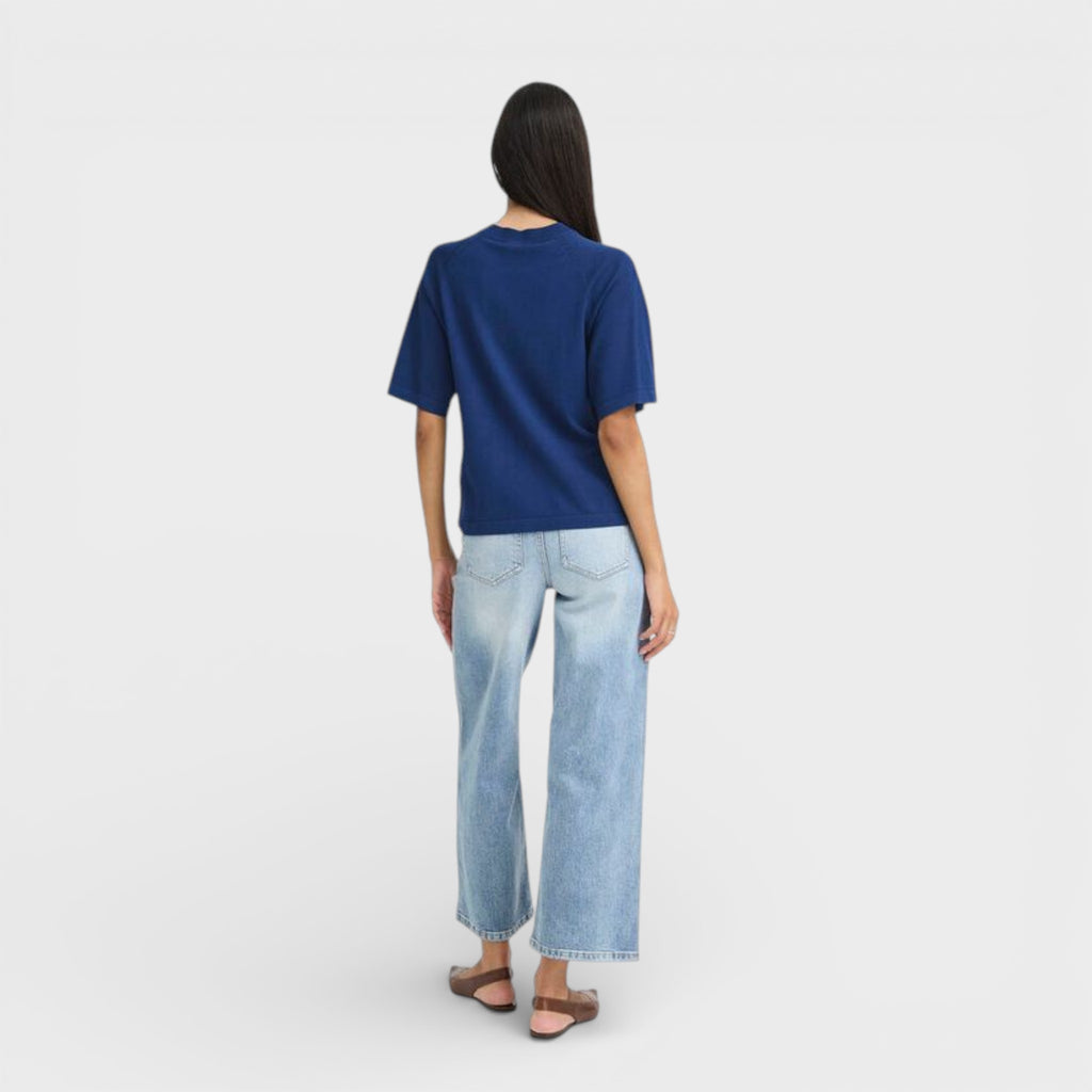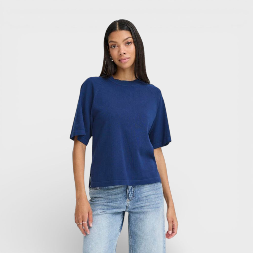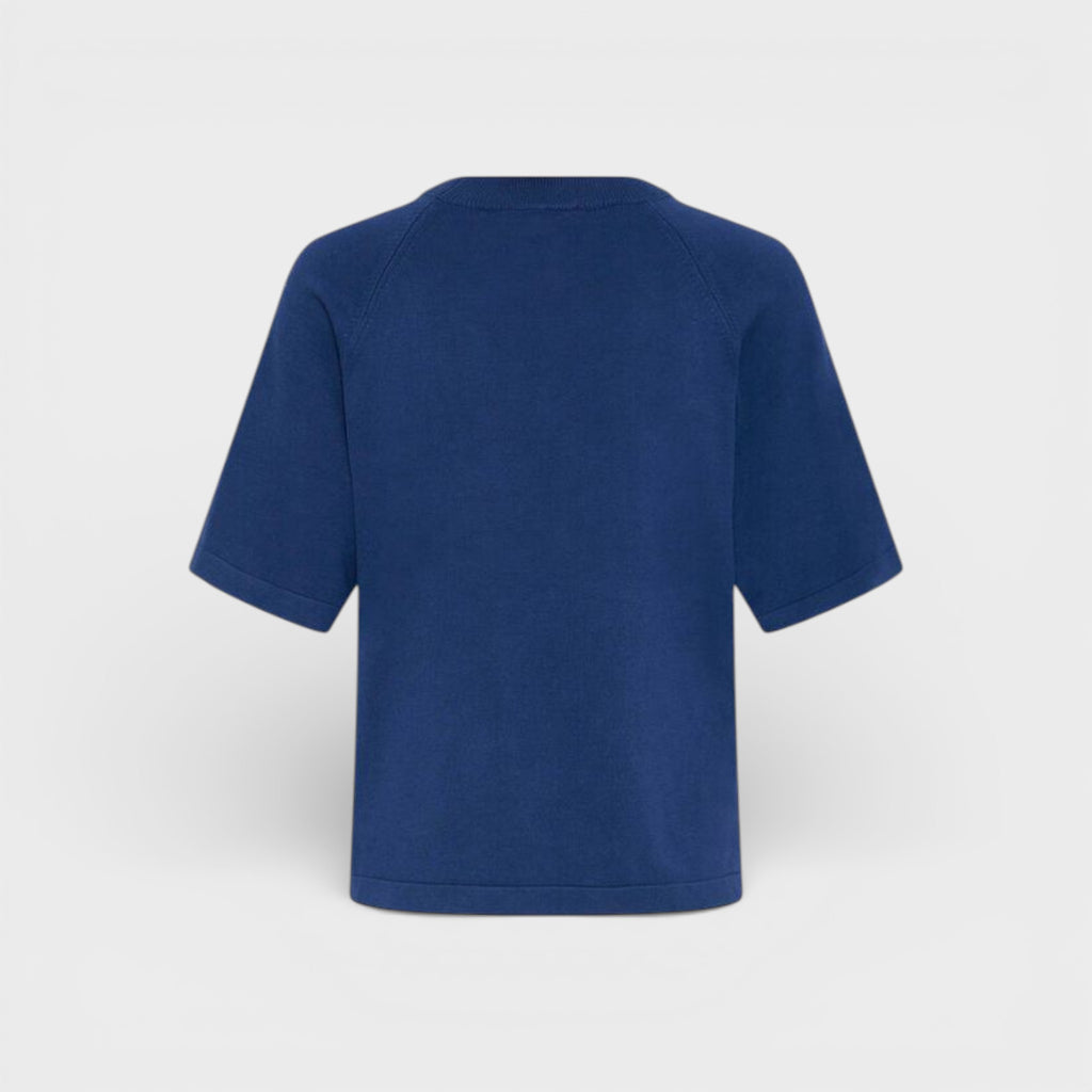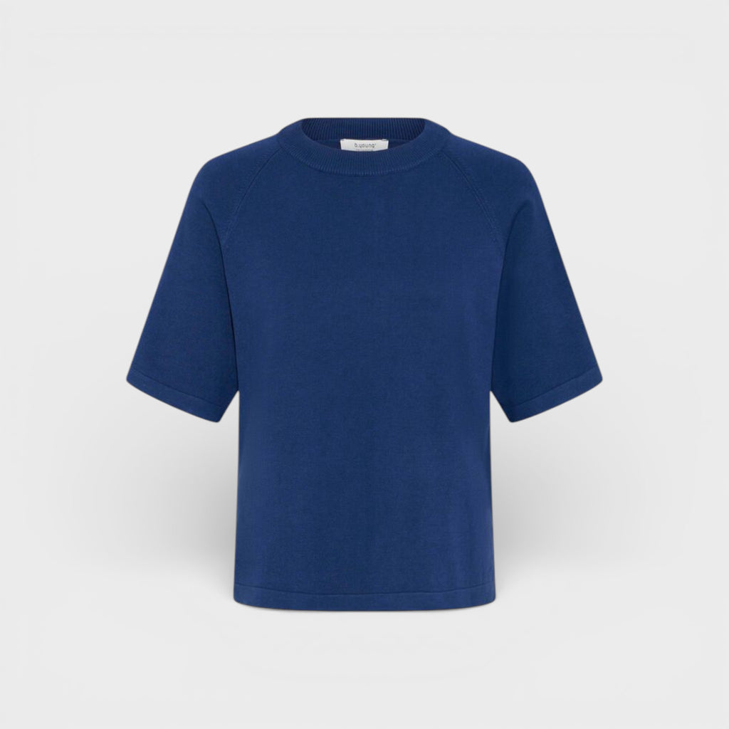 The B.young MORLA Short Sleeve Knit in Medieval Blue is an effortless everyday essential with a clean, modern feel. Designed with a relaxed fit and soft knit finish, it’s perfect for easy styling across seasons.