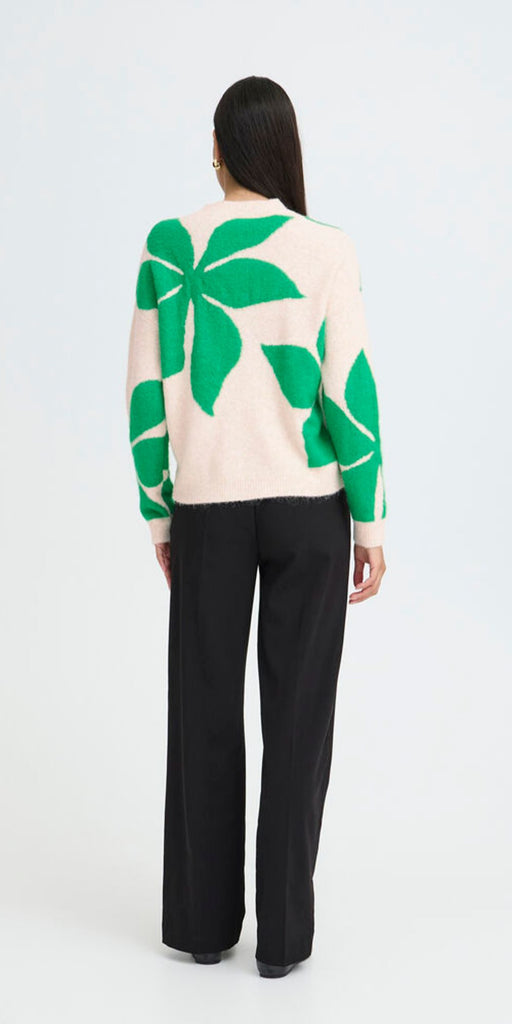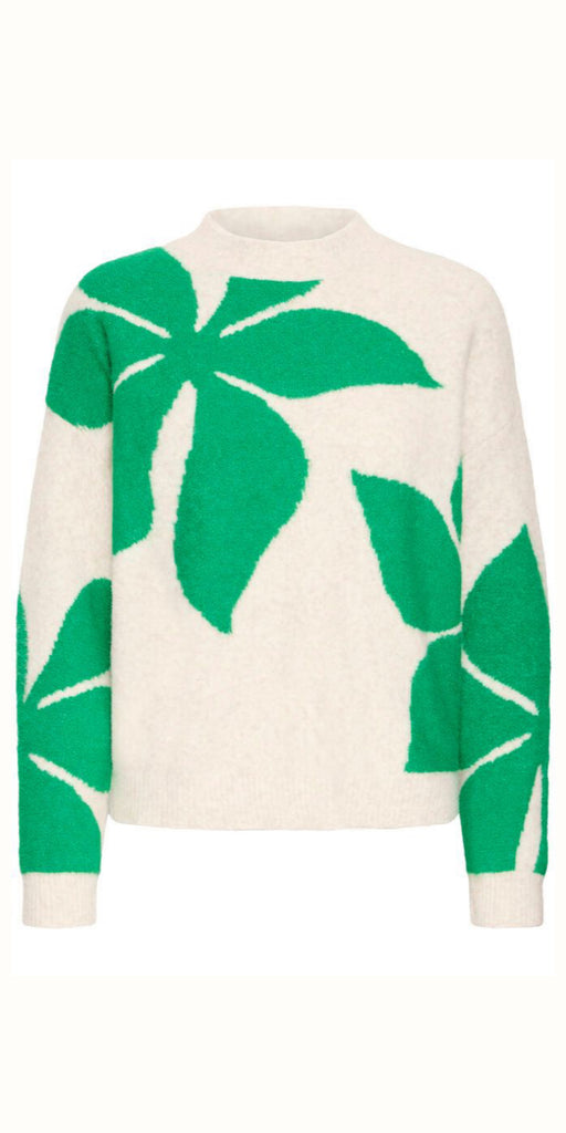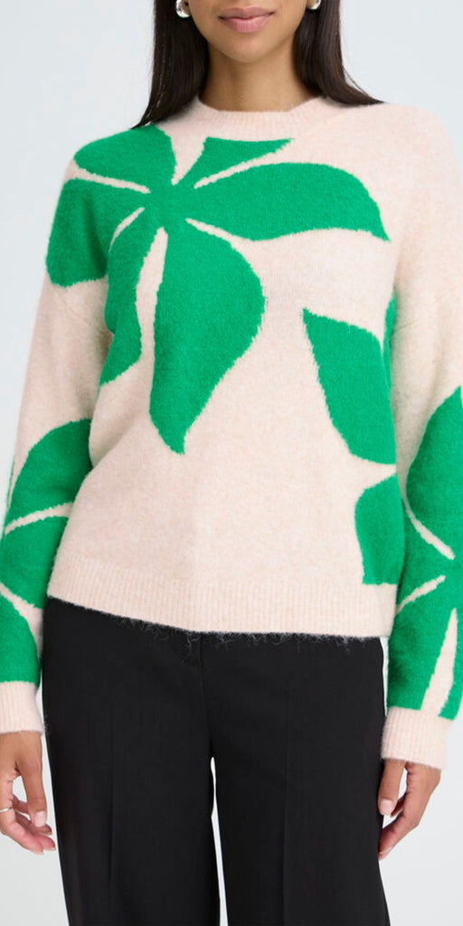 Striking and super soft vibrant green floral knit by b young. Lightweight yet cosy and a versatile dress up or down piece.