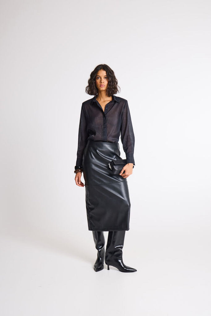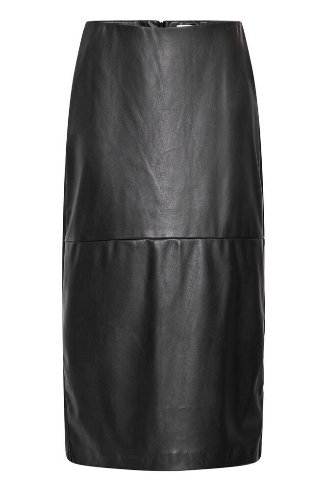 The ICHI ZOMA Skirt is crafted from soft faux leather for a luxurious feel with a modern edge. Designed in a sleek straight cut, it features a back zip fastening and subtle seam detailing for a polished finish. Perfect for elevating day-to-night looks.