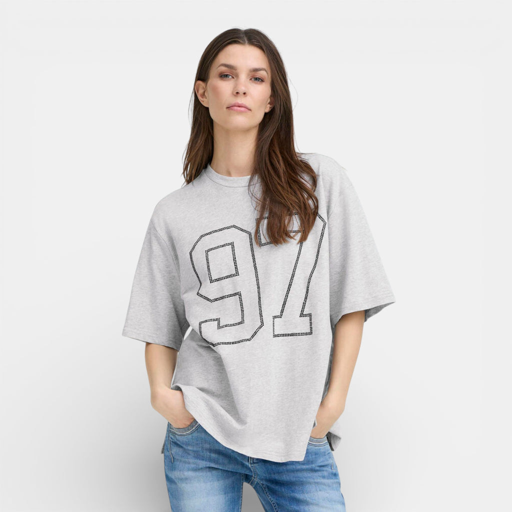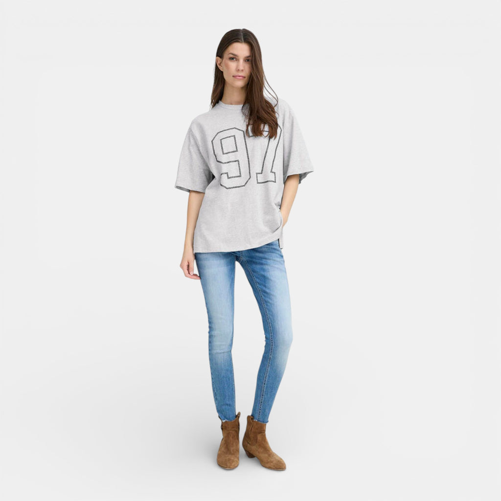 Sporty, relaxed, and effortlessly cool — the ARYA tee, by PULZ Jeans, features an oversized fit and bold varsity-style “97” graphic on soft grey cotton. Perfect for laid-back days, this easy throw-on style pairs seamlessly with denim for an off-duty look with attitude.
