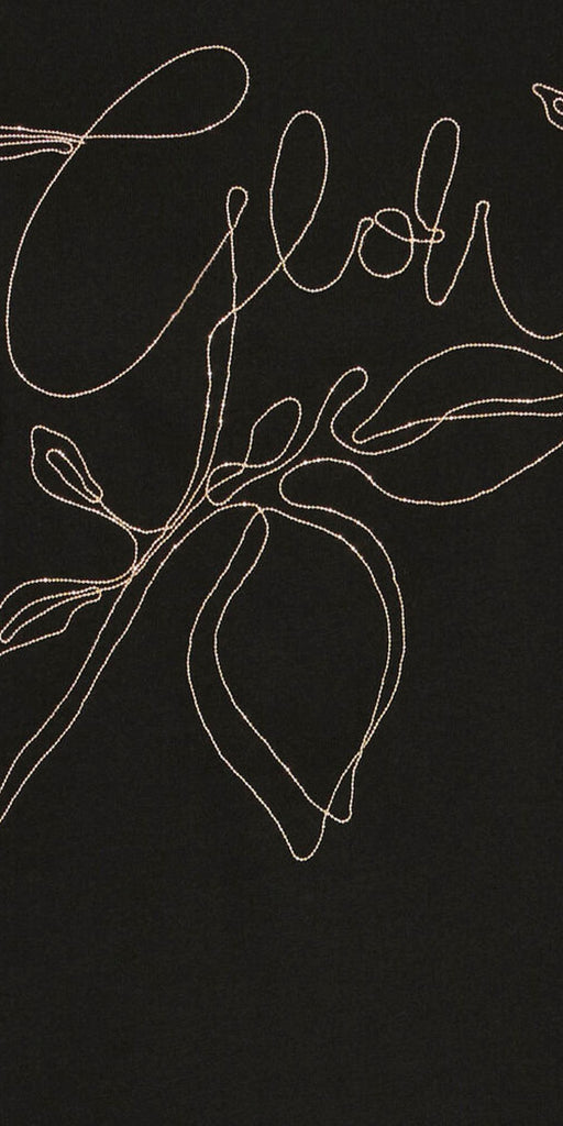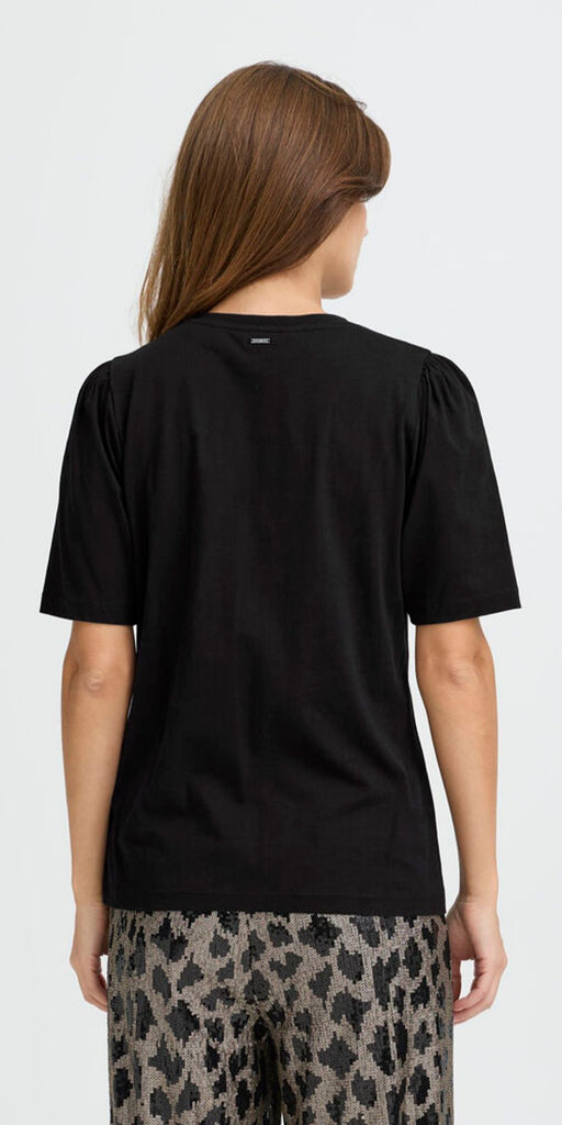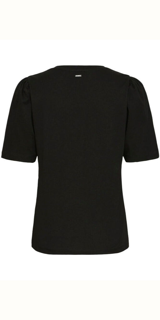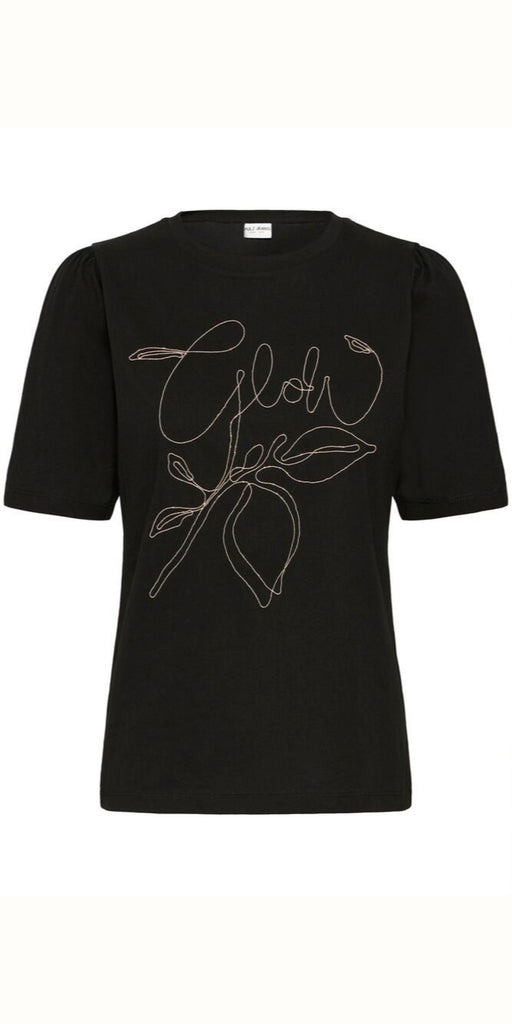 We are in love with this new black t shirt by PULZ Jeans, with pretty structured short sleeves and ‘glow’ in a fine gold bead appliqué. Gorgeous with denim and a biker jacket.